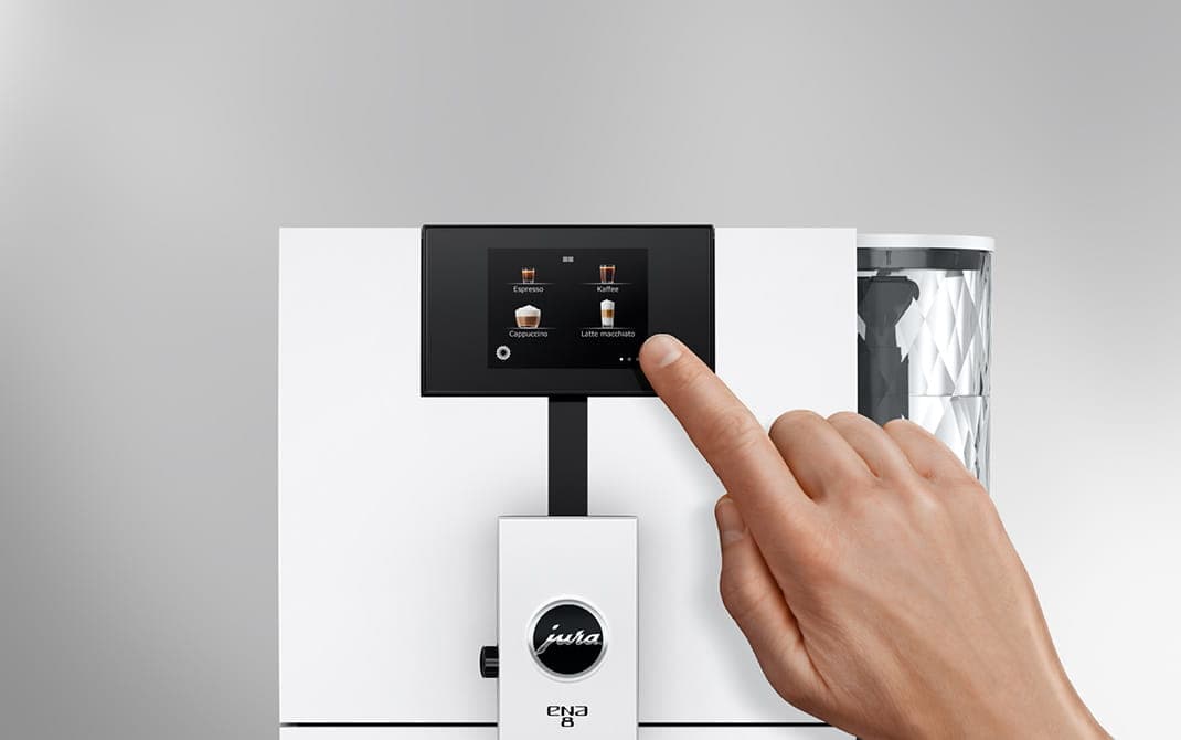 With the easy-to-use touchscreen display and intuitive operation, you have 15 specialities at your fingertips. The milk system cleaning function can be started at the touch of a button, ensuring TÜV-certified hygiene at all times. You can also operate your coffee machine conveniently from your smartphone, because thanks to WiFi technology the ENA 8 is also compatible with J.O.E.®.