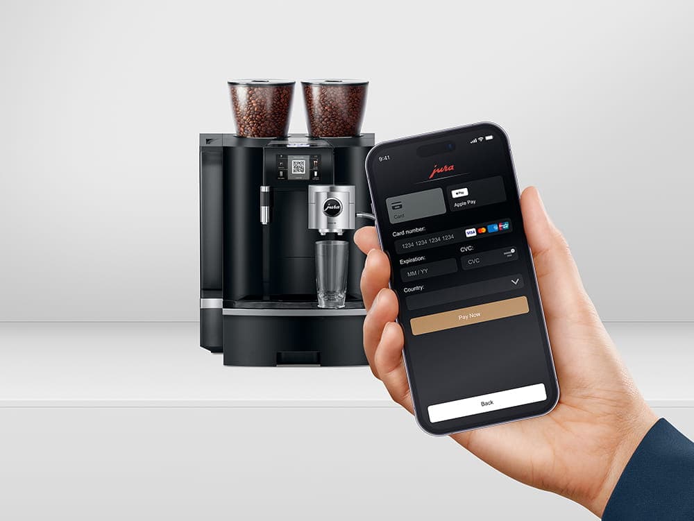 JURA Payment Connect makes mobile payment and managing your professional JURA coffee machine easier than ever before. Easily installed in the coffee machine, Payment Connect allows you to take advantage of all the benefits of Pocket Pilot 2.0*. Pocket Pilot 2.0 allows both cashless payment and central machine monitoring without any additional infrastructure.